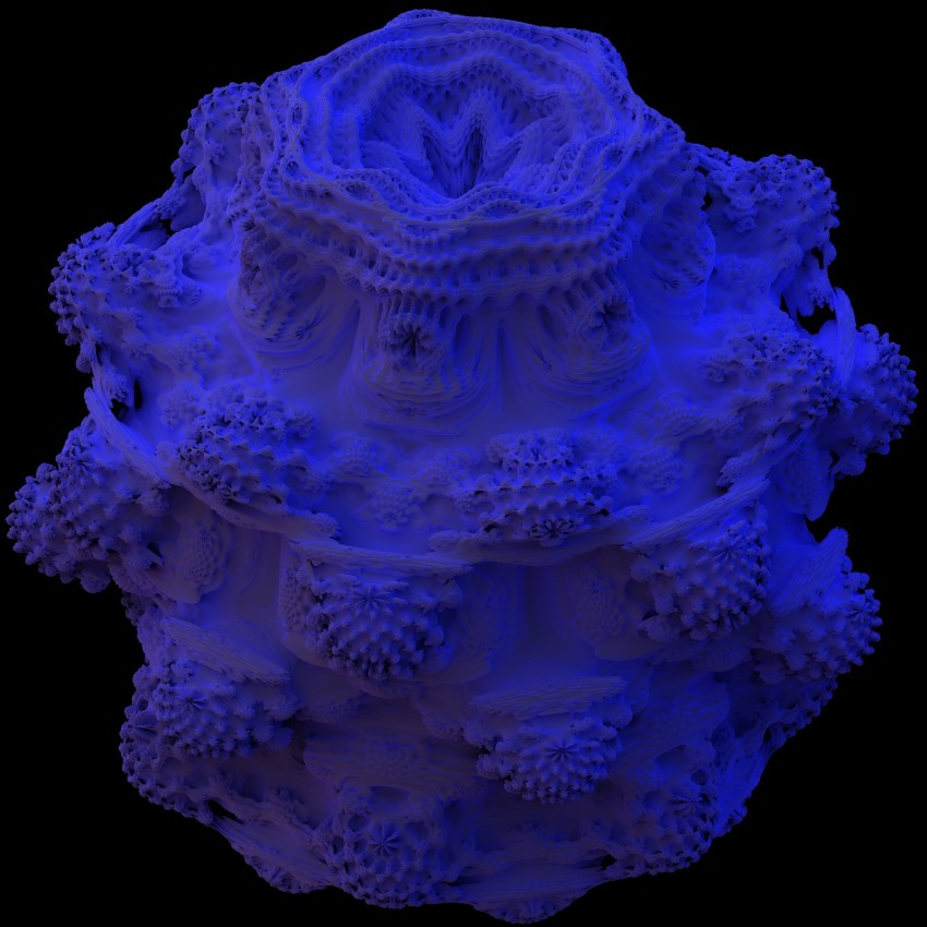 From a distant and unknown part of a certain universe exists an asteroid. Except it's not just any asteroid, but a giant carbon copy of the Mandelbulb set, carved by (even larger) mechanical robots down to an incredibly fine level (apx. 1 trillion voxels cubed).