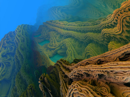 "Fossil Valley" (NEW). This is a deep zoom into the Mandelbulb Spine. See here for more details.